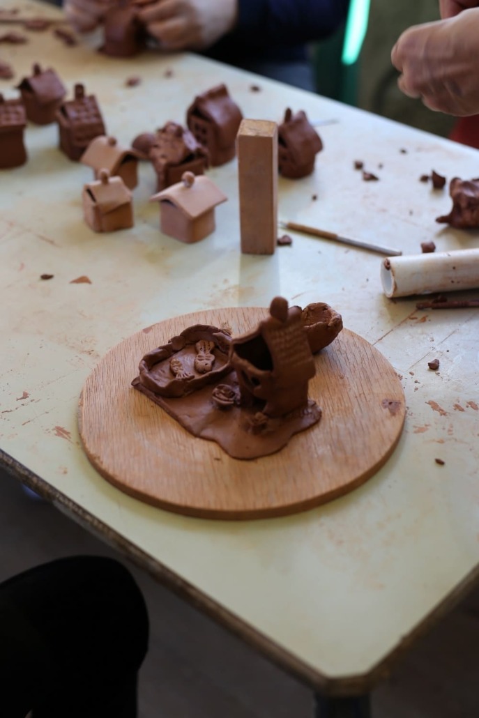 Dans ce village, Odile a vécu un moment suspendu dans le temps en animant un atelier de modelage avec quelques enfants du village. Plein d’imagination, ces derniers ont ainsi pu, créer leur décoration de Noël en forme de maisonnette.